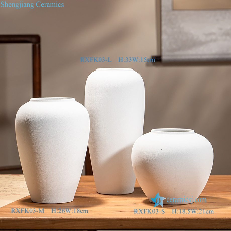 RXFK03-LMS Jingdezhen High Temperature Set of 3 Sandy White Porcelain Vases