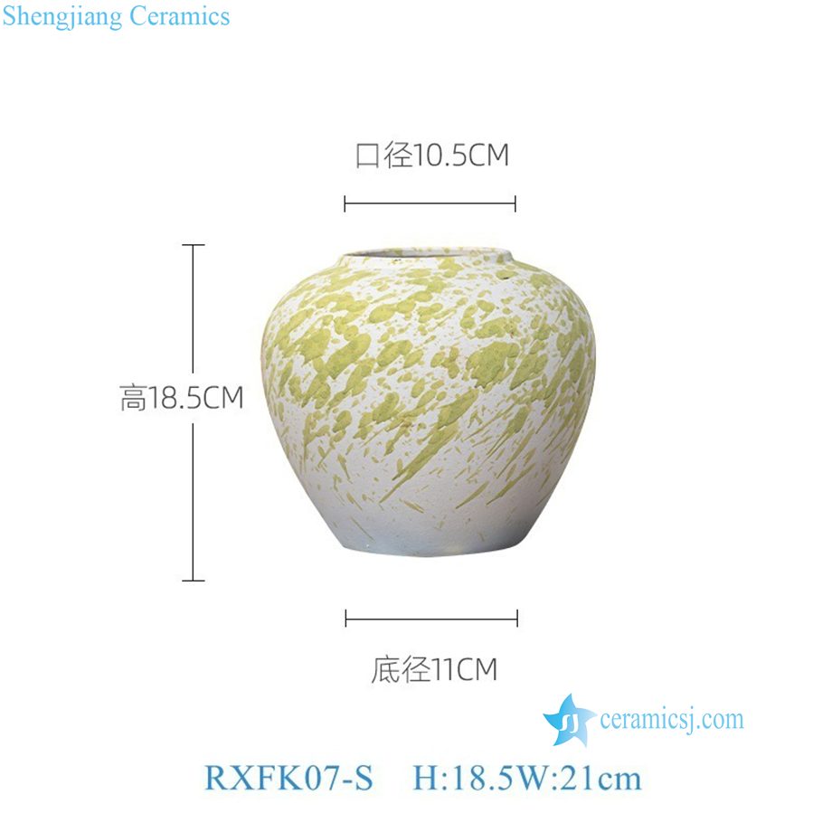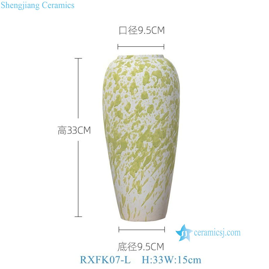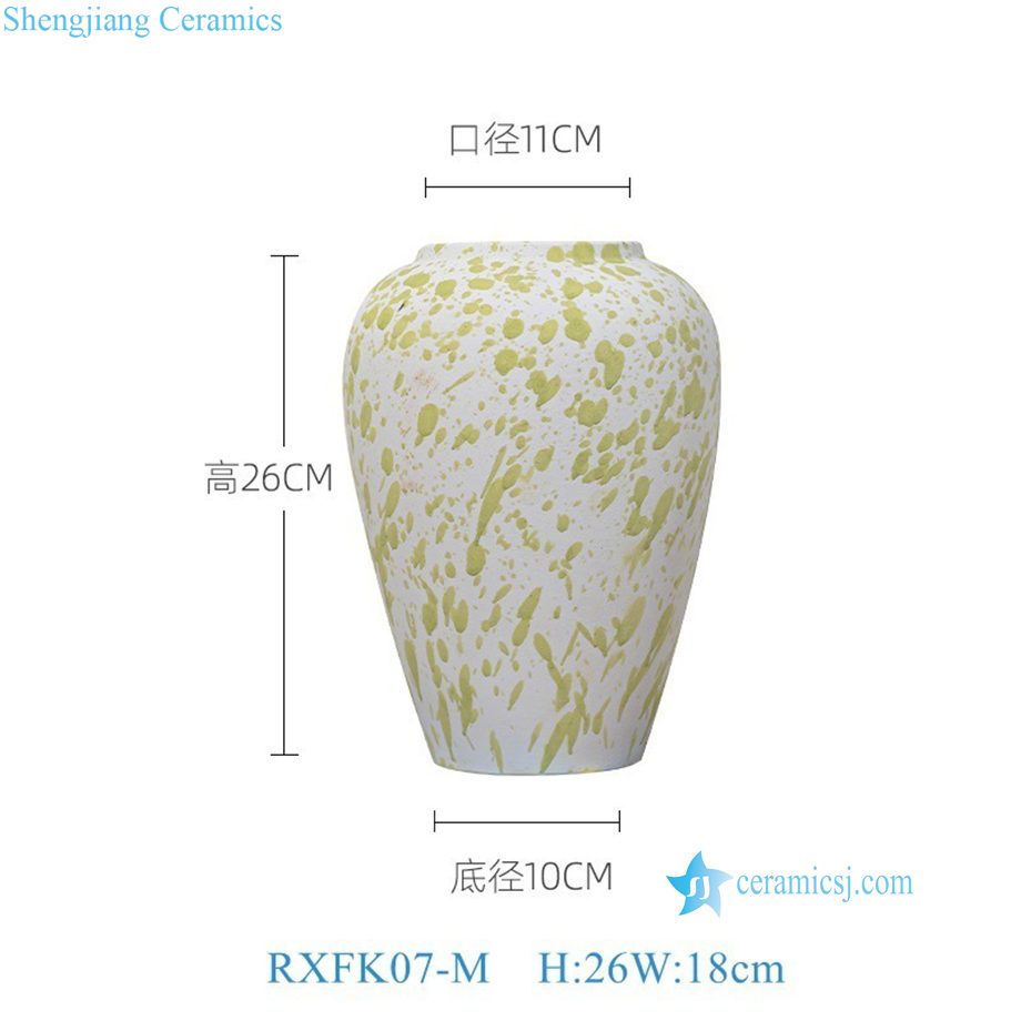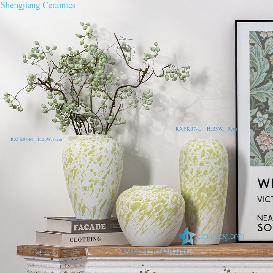 Set of 3 White Ceramic Vases with Green Splatter Glaze