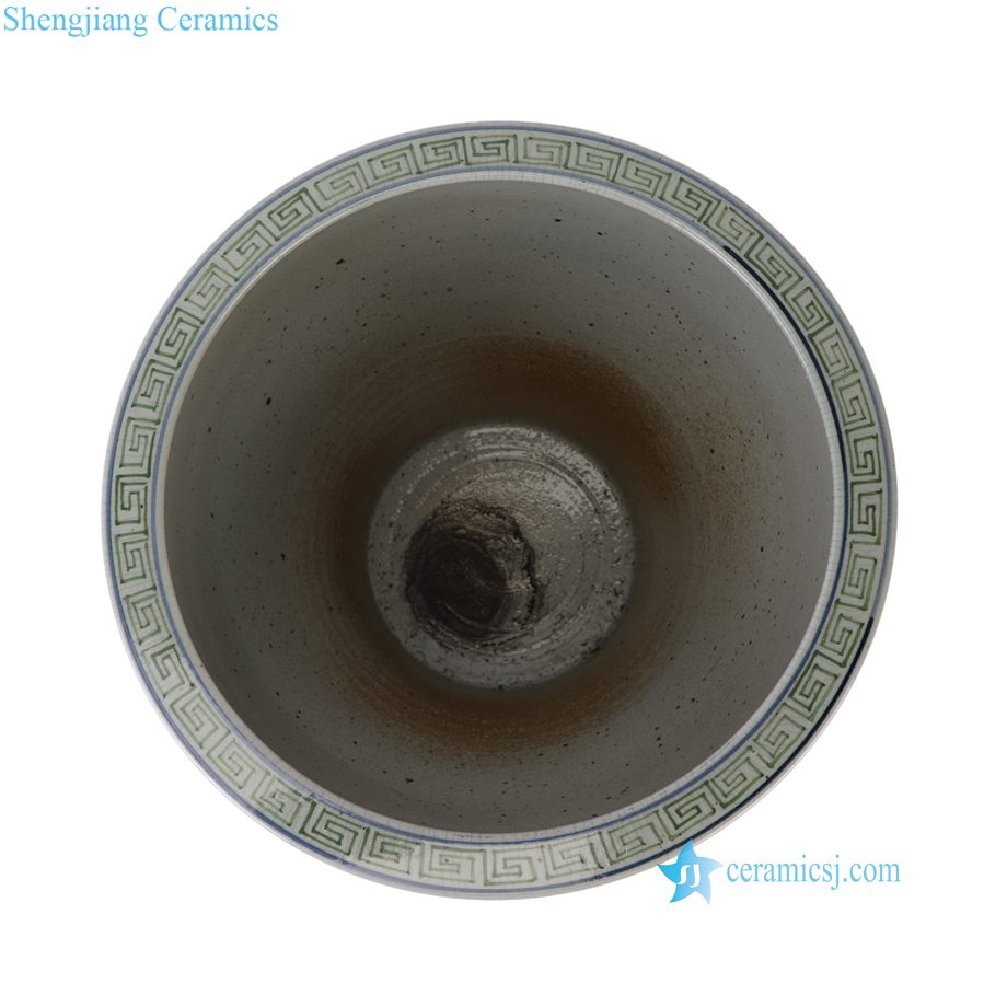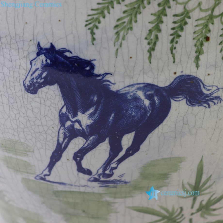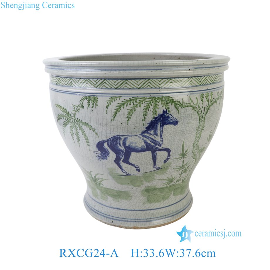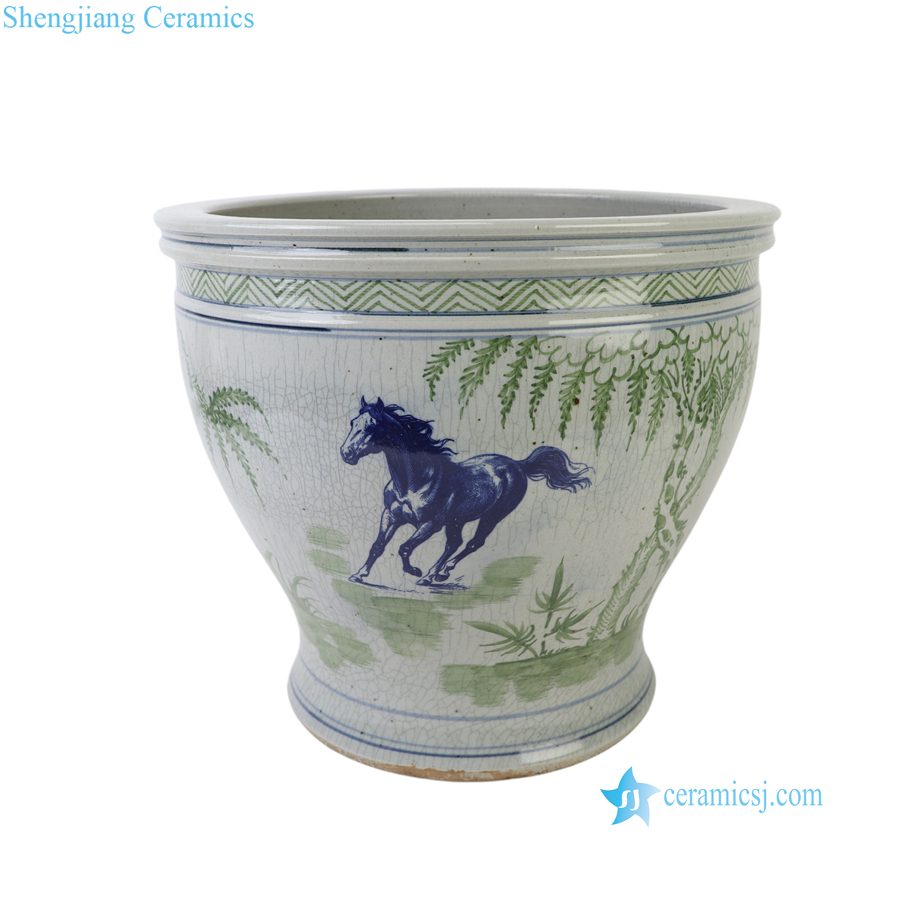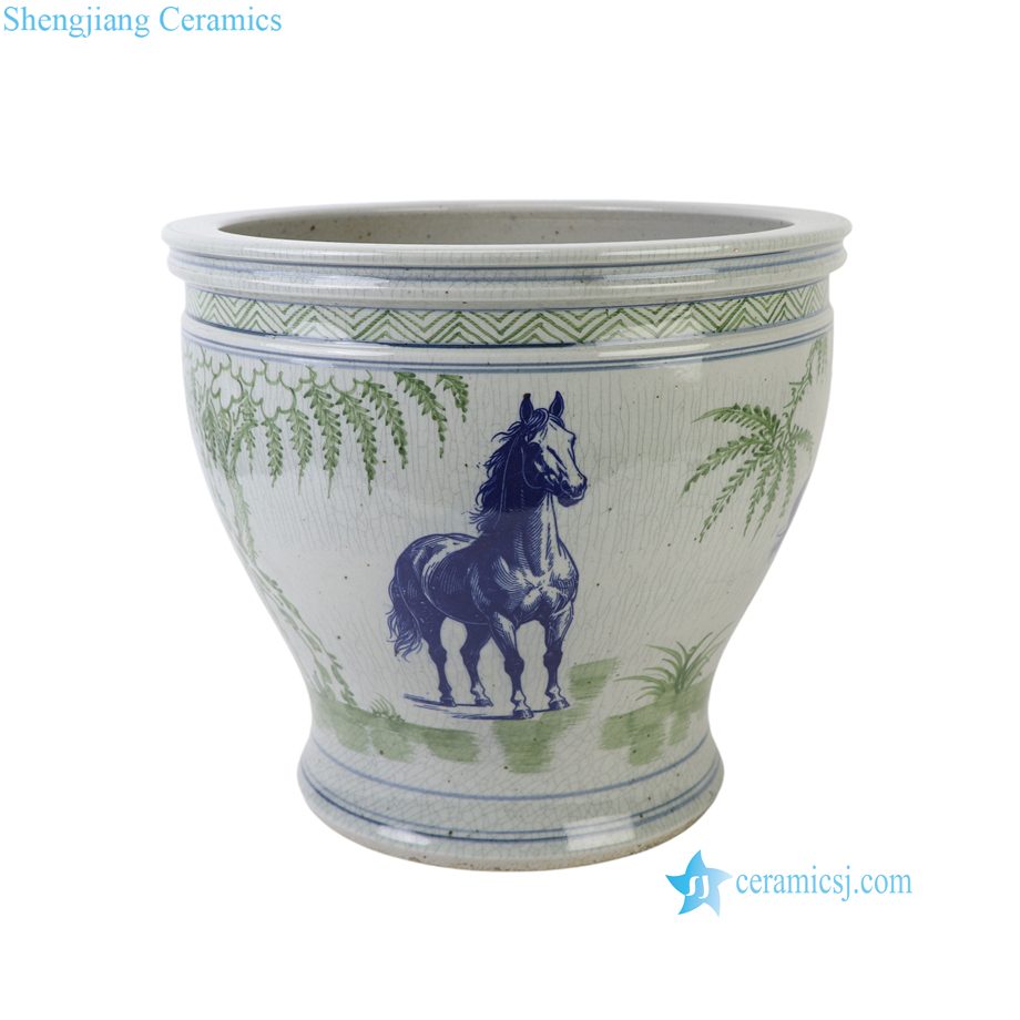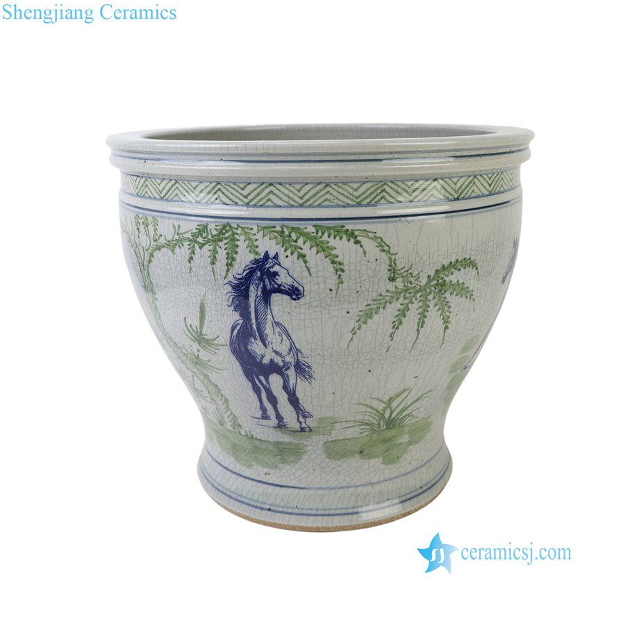 RXCG24-A Traditional Bamboo Motif Horse Crackle Glaze Ceramic Planter Large Blue Green Porcelain Flower Planters