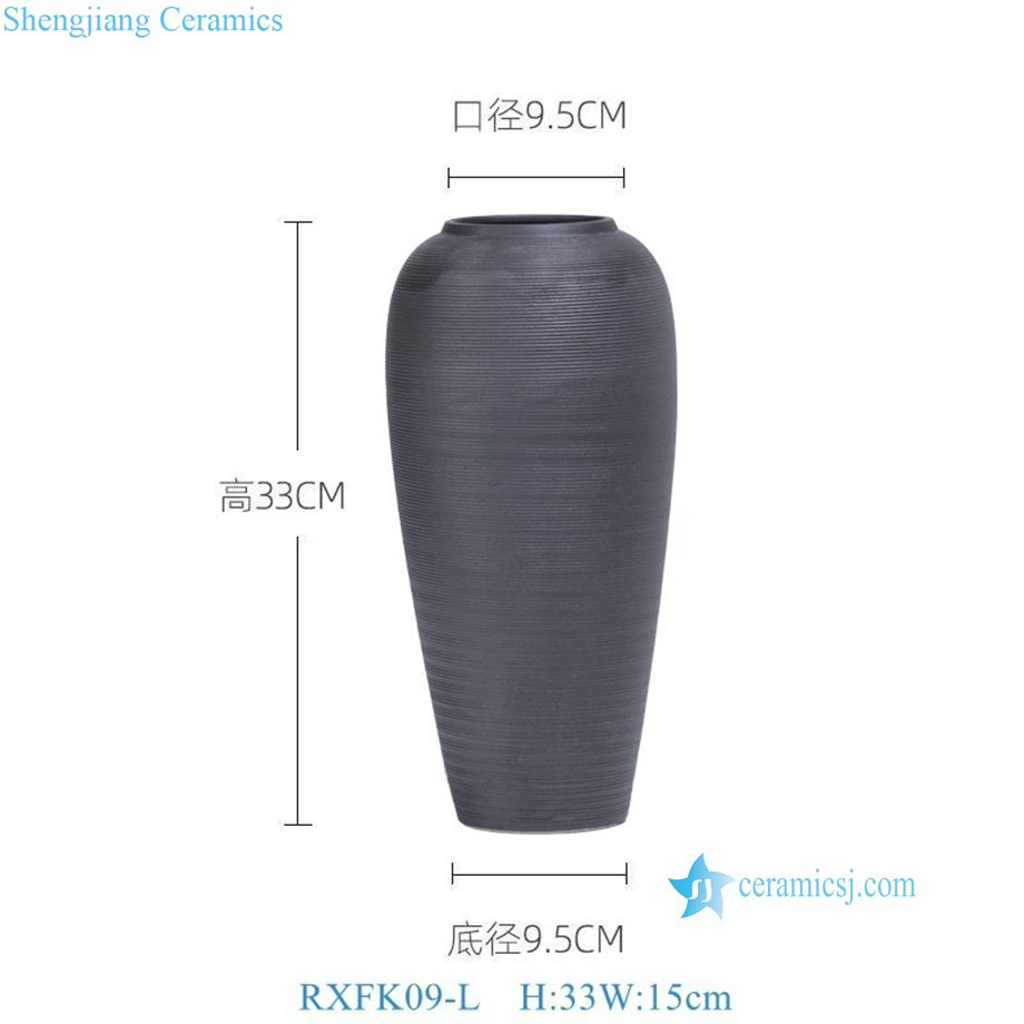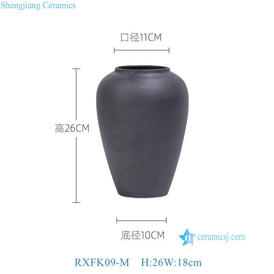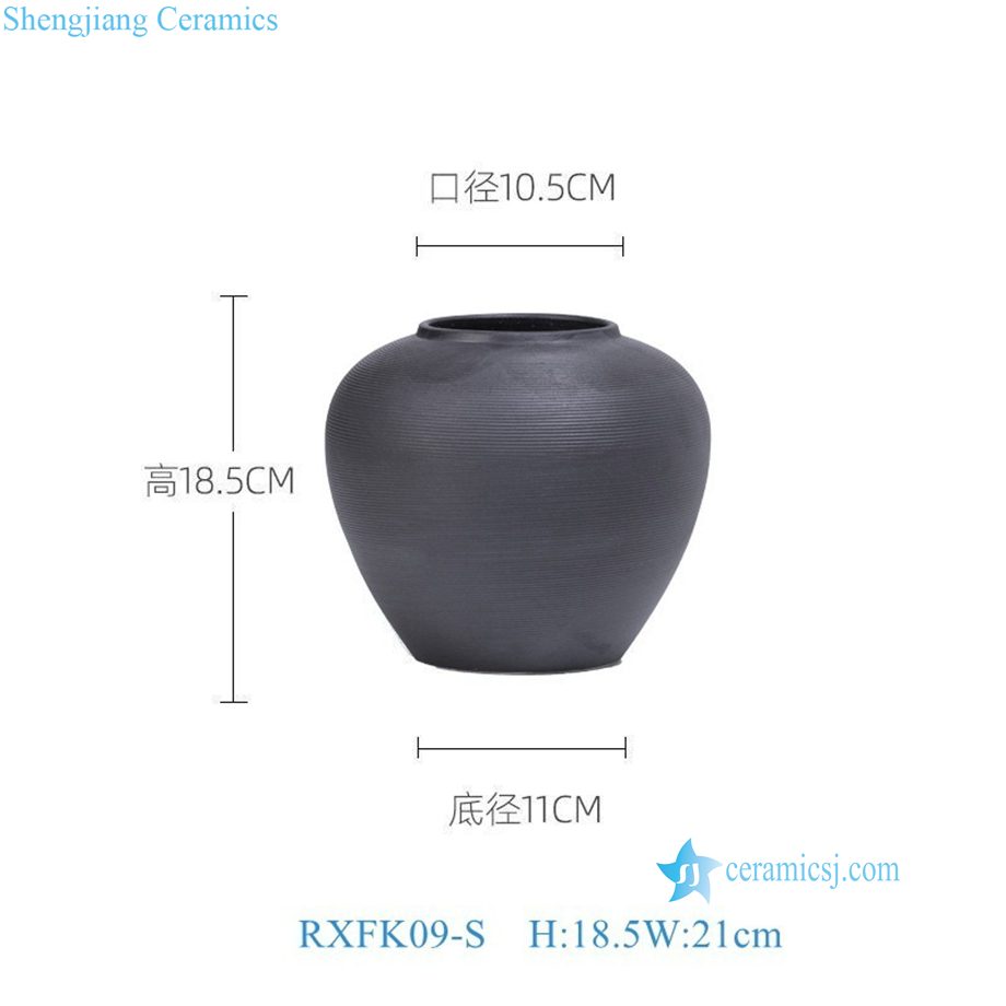 RXFK09-LMS Jingdezhen Handcrafted 3-Piece Matte Black Textured Ceramic Vase Set