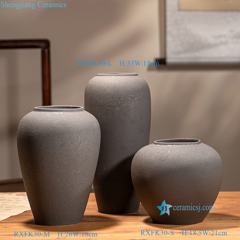 RXFK30-LMS Wabi-Sabi Style Sandy Matte Taupe Ceramic Vase Set of 3