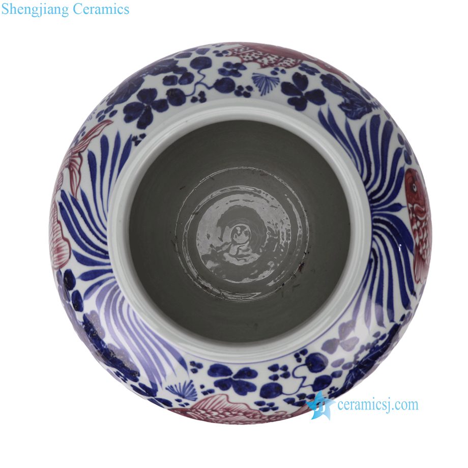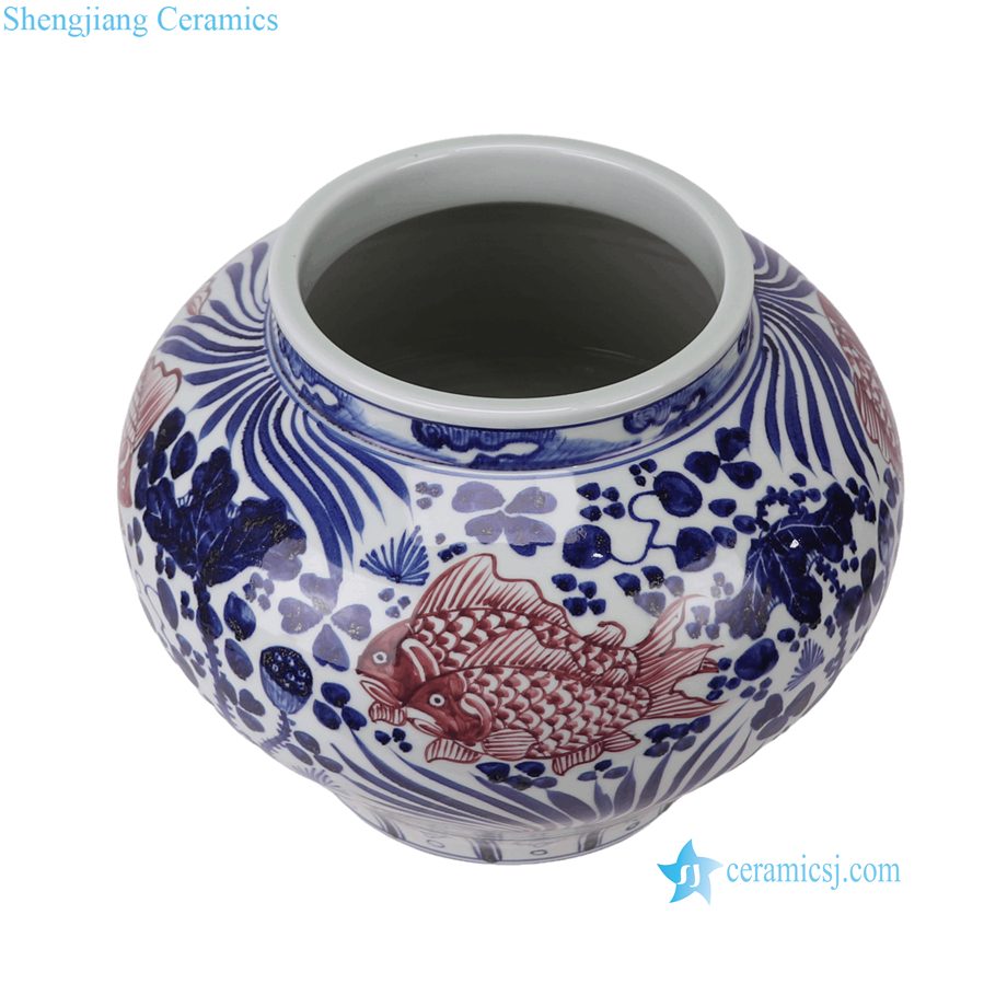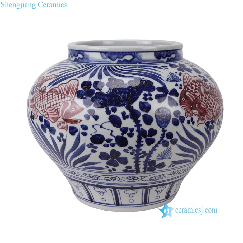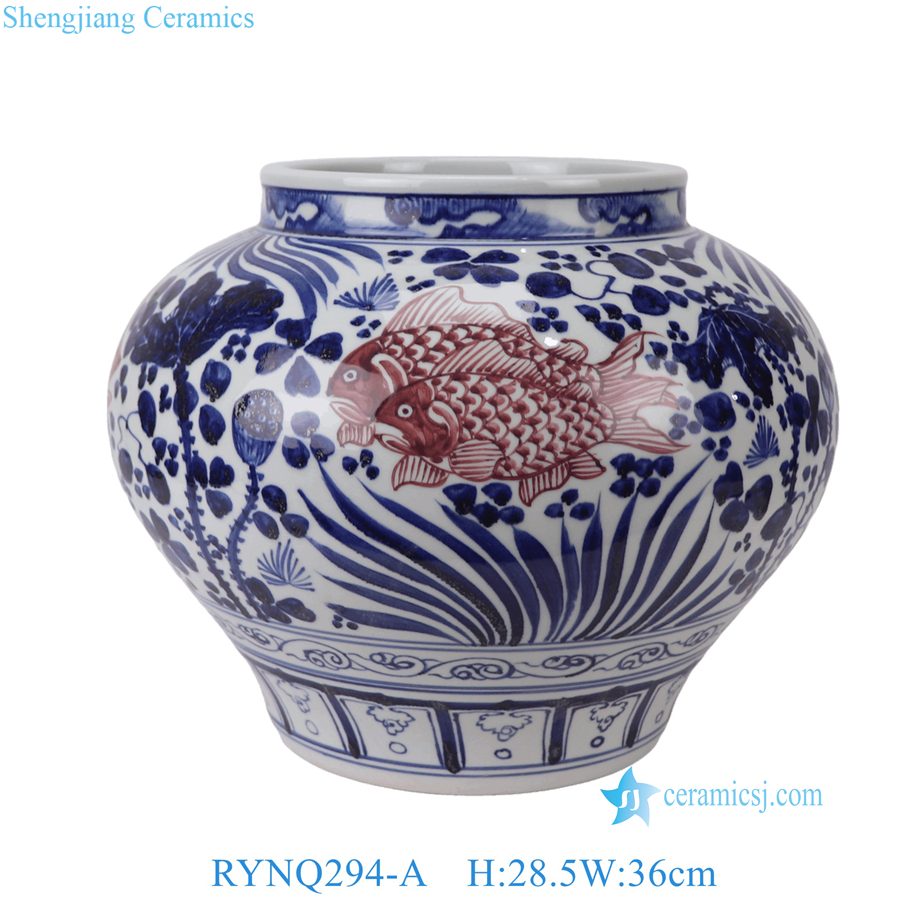 RYNQ294-A Blue and White with Underglaze Red Ceramic Flower Pots Chinoiserie Tabletop Urns