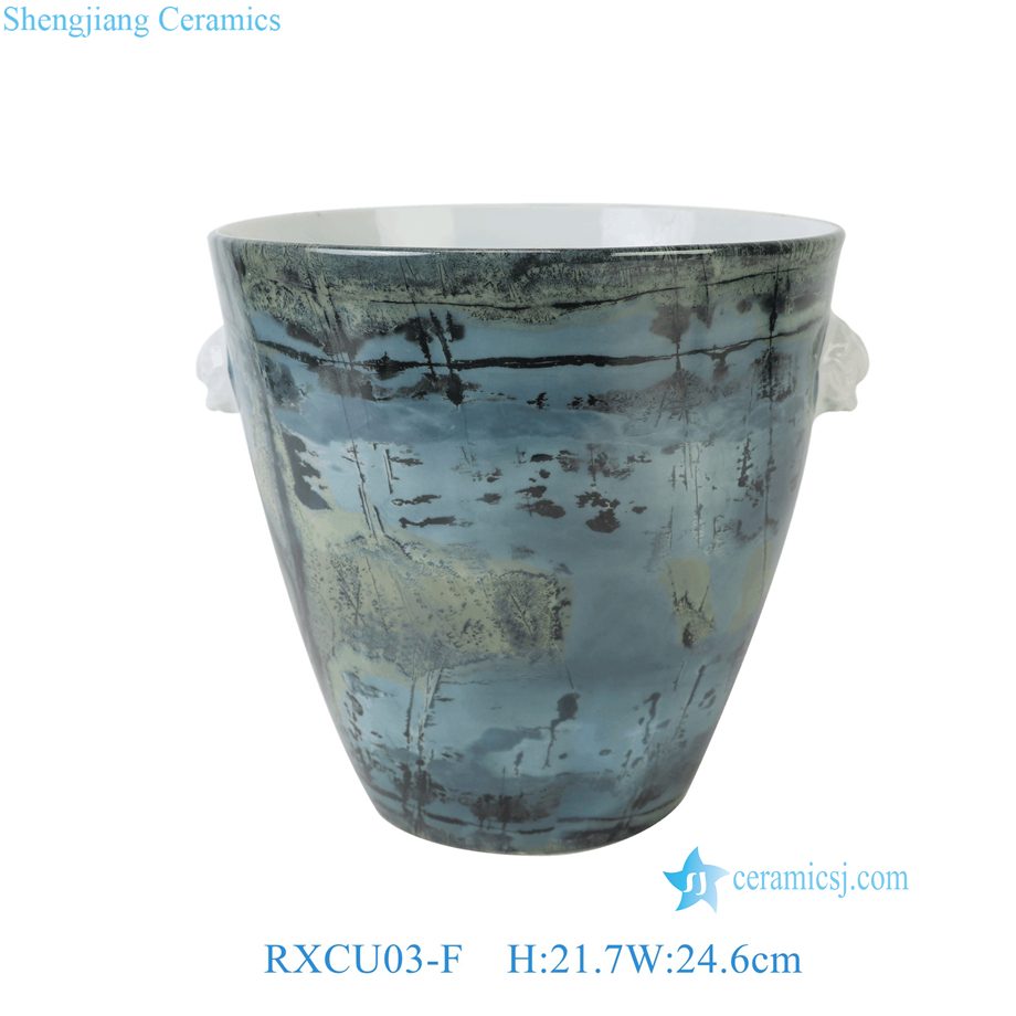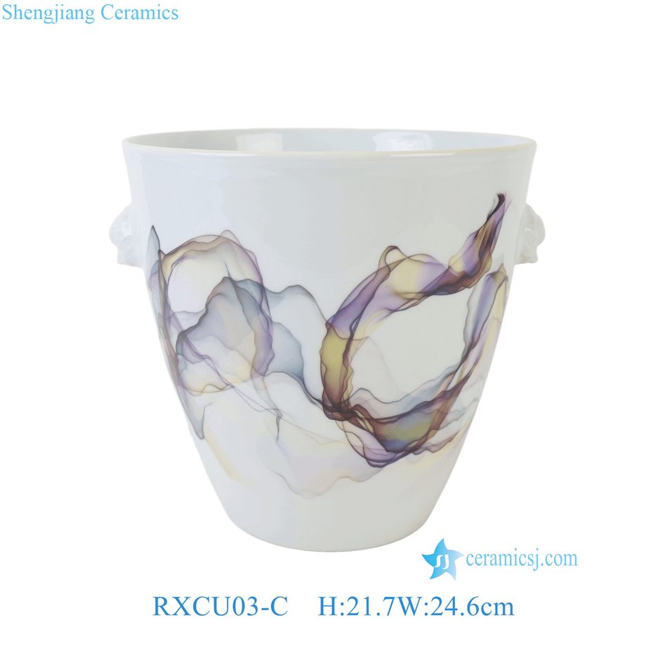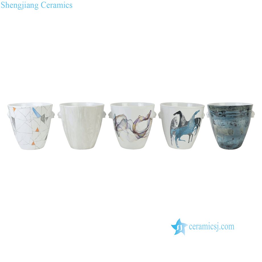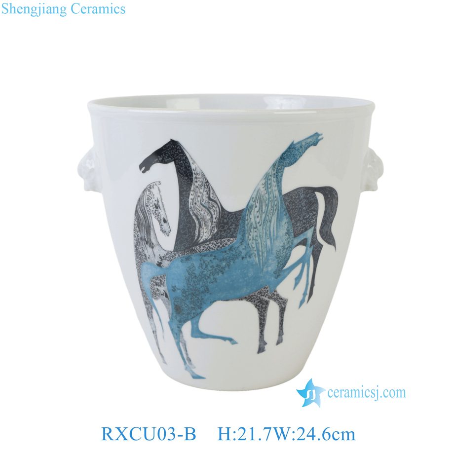 RXCU03-A-B-C-D-E-F Blue, White Marin Colorful Horse Floral Painting Ceramic Ice Bucket Flower Pot
