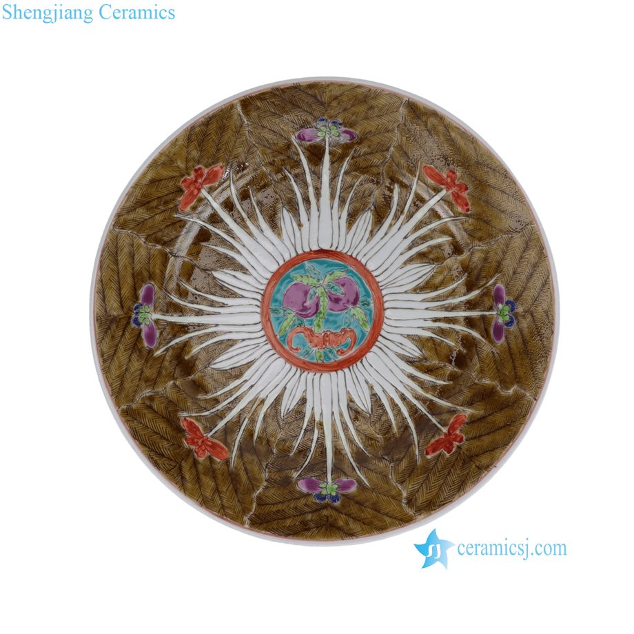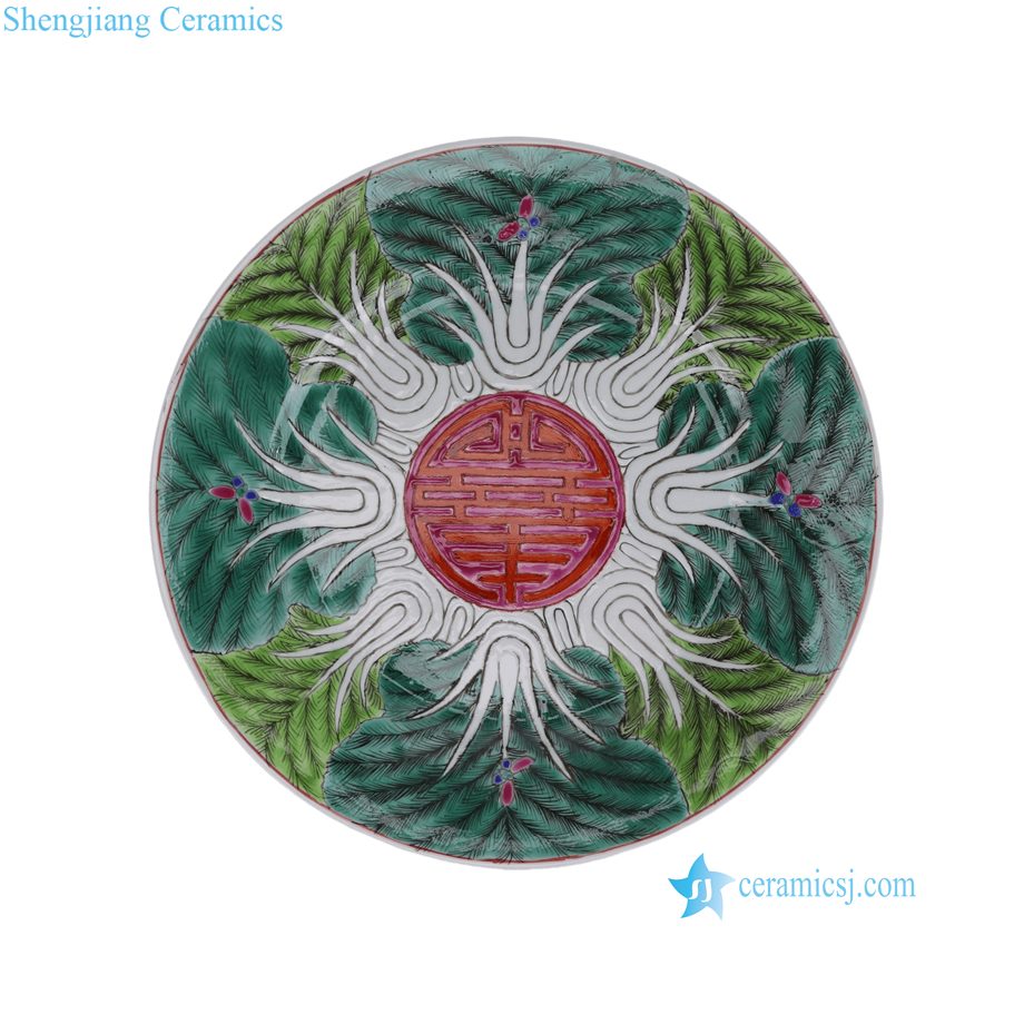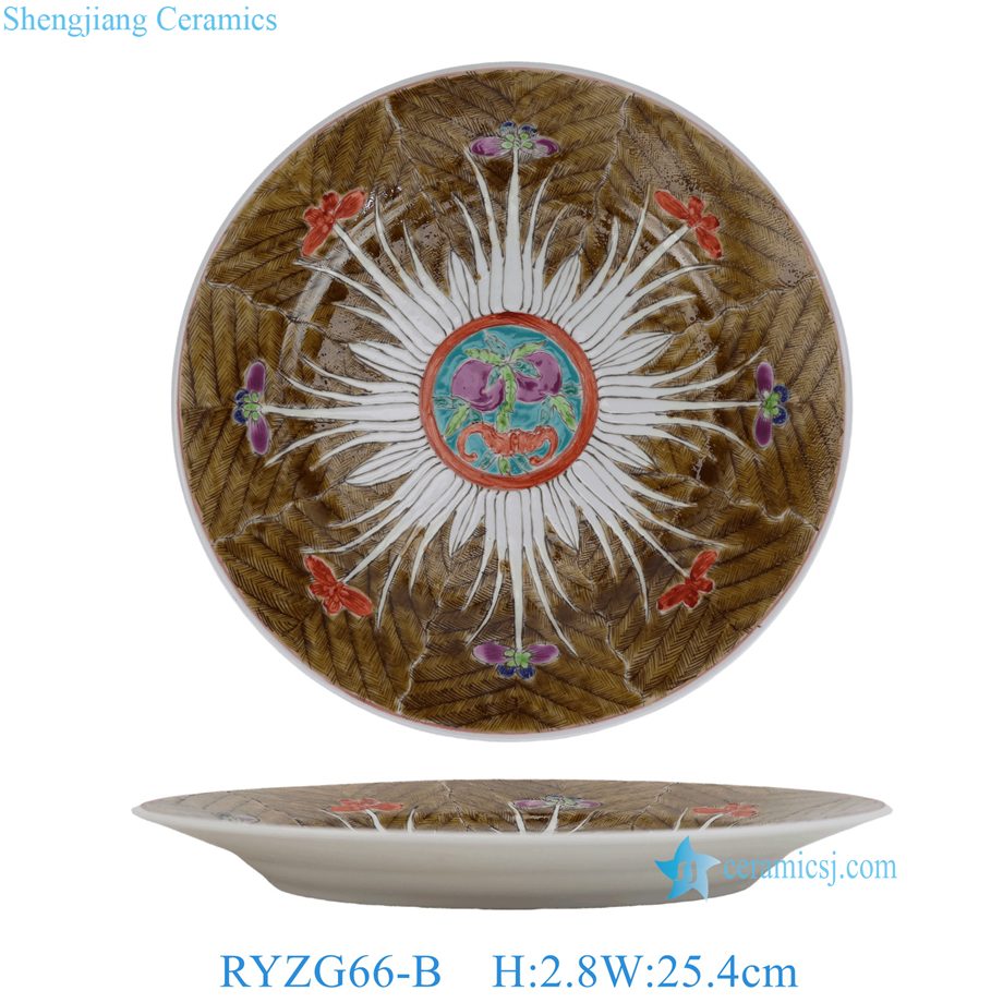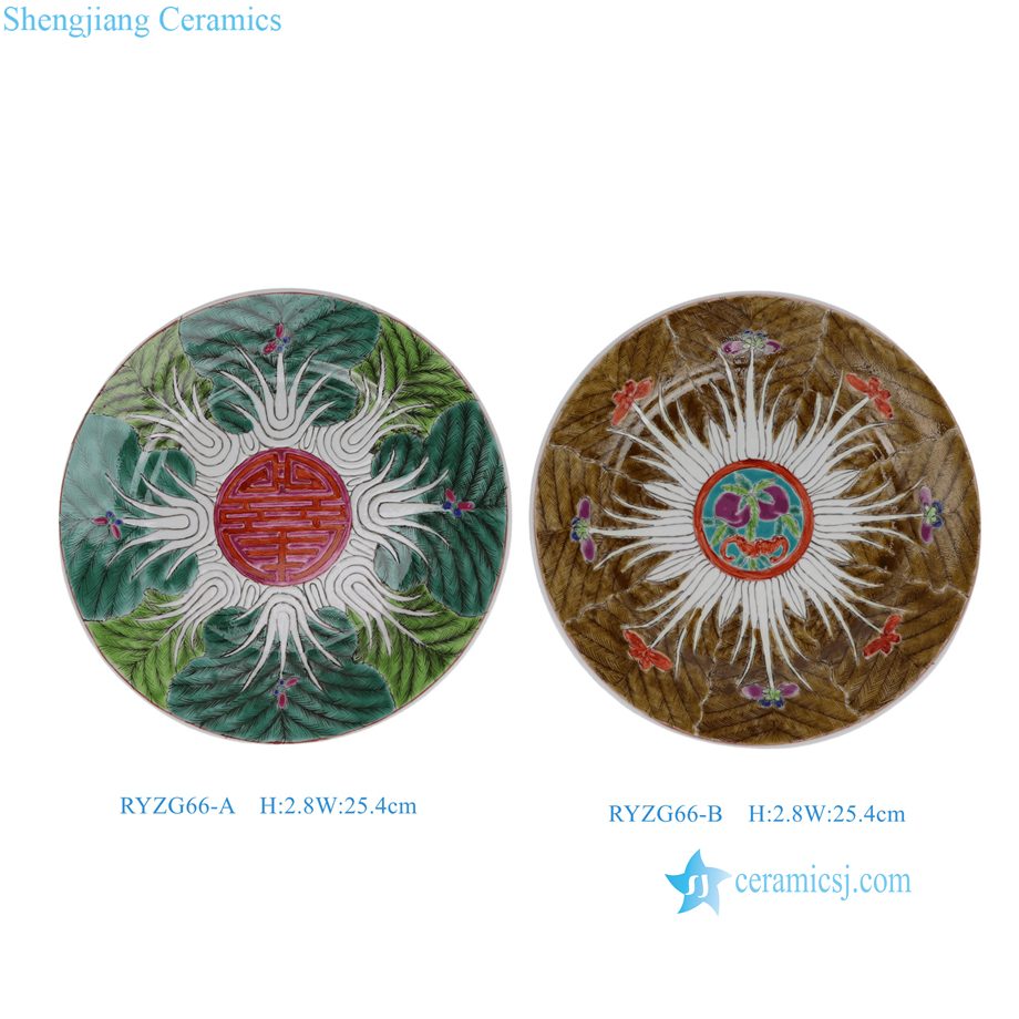 RYZG66-A-B 10inch Chinese Famille Verte Green Brown “Bok Choy” Cabbage Butterfly Pattern Ceramic Plate