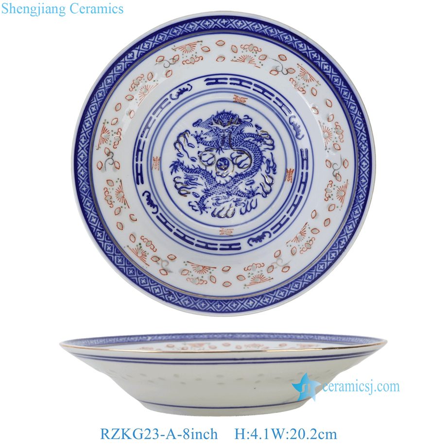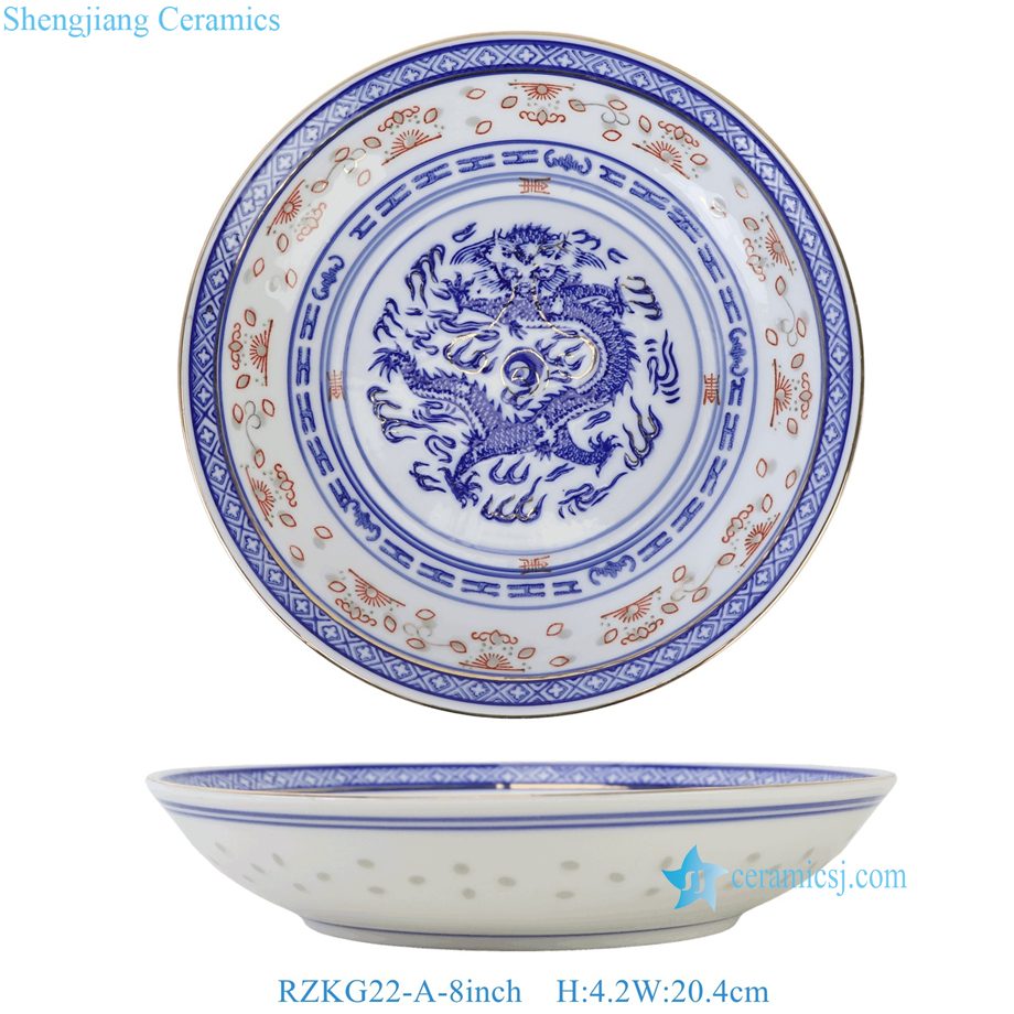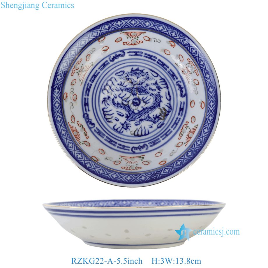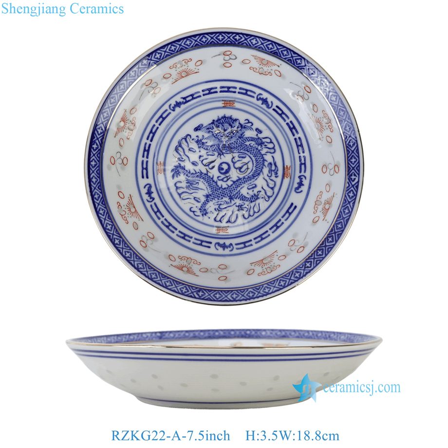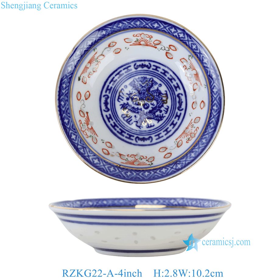 RZKG22-A-4inch-5inch-7inch-8inch Vintage Chinese Dipping Bowls Porcelain Blue White Small Gold Trim Dragons Pattern
