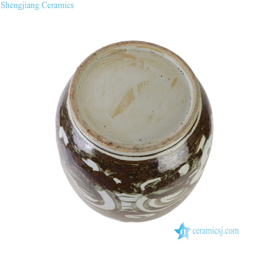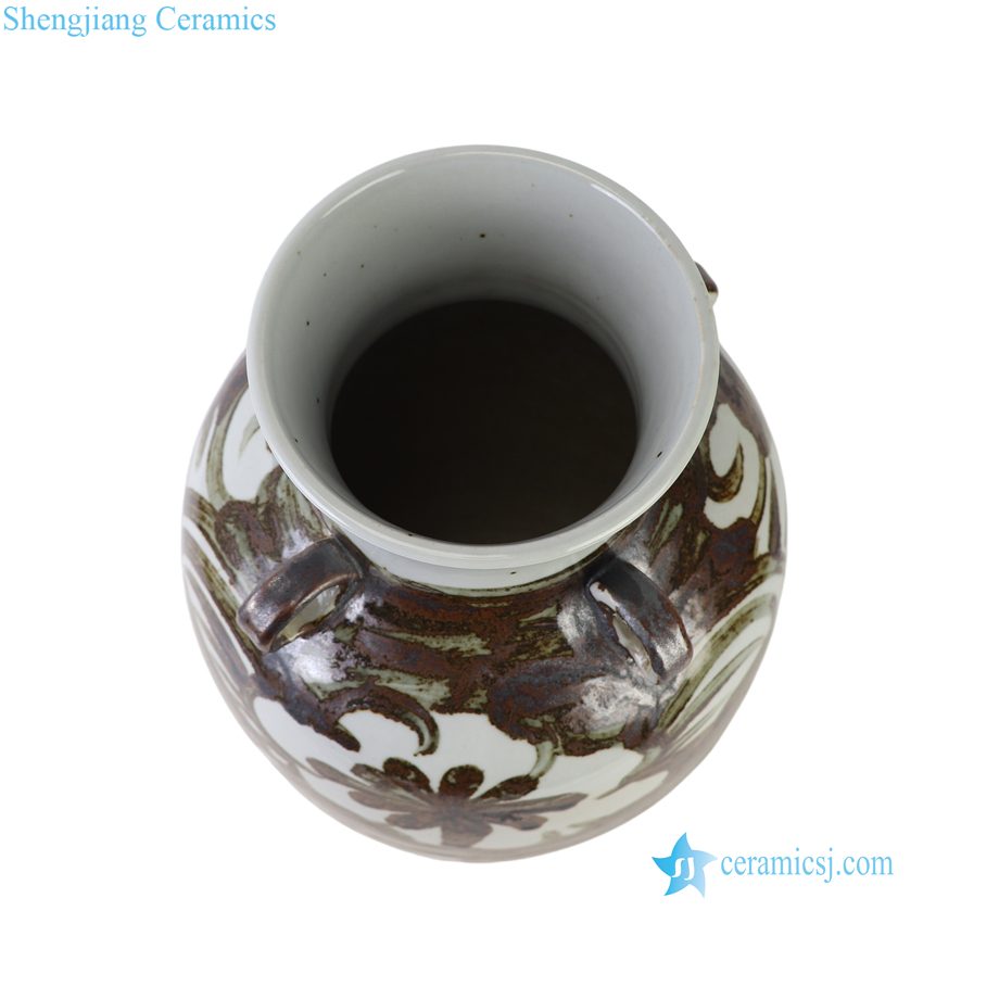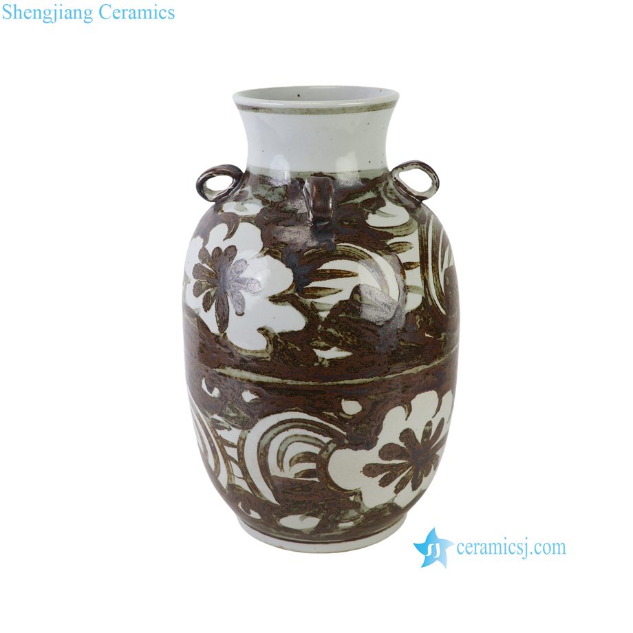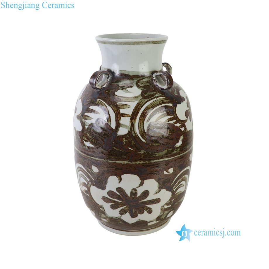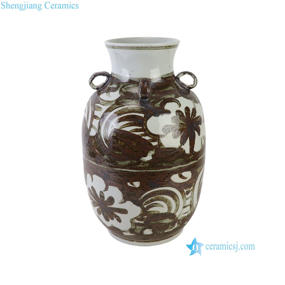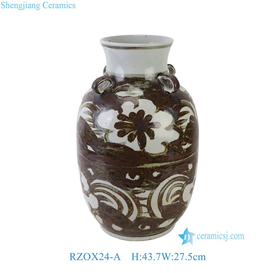 RZOX24-A Large Rustic Ceramic Vase with Four Small Handles Traditional Folk Art Porcelain Decorative Pots