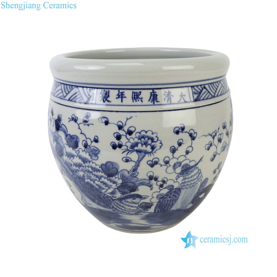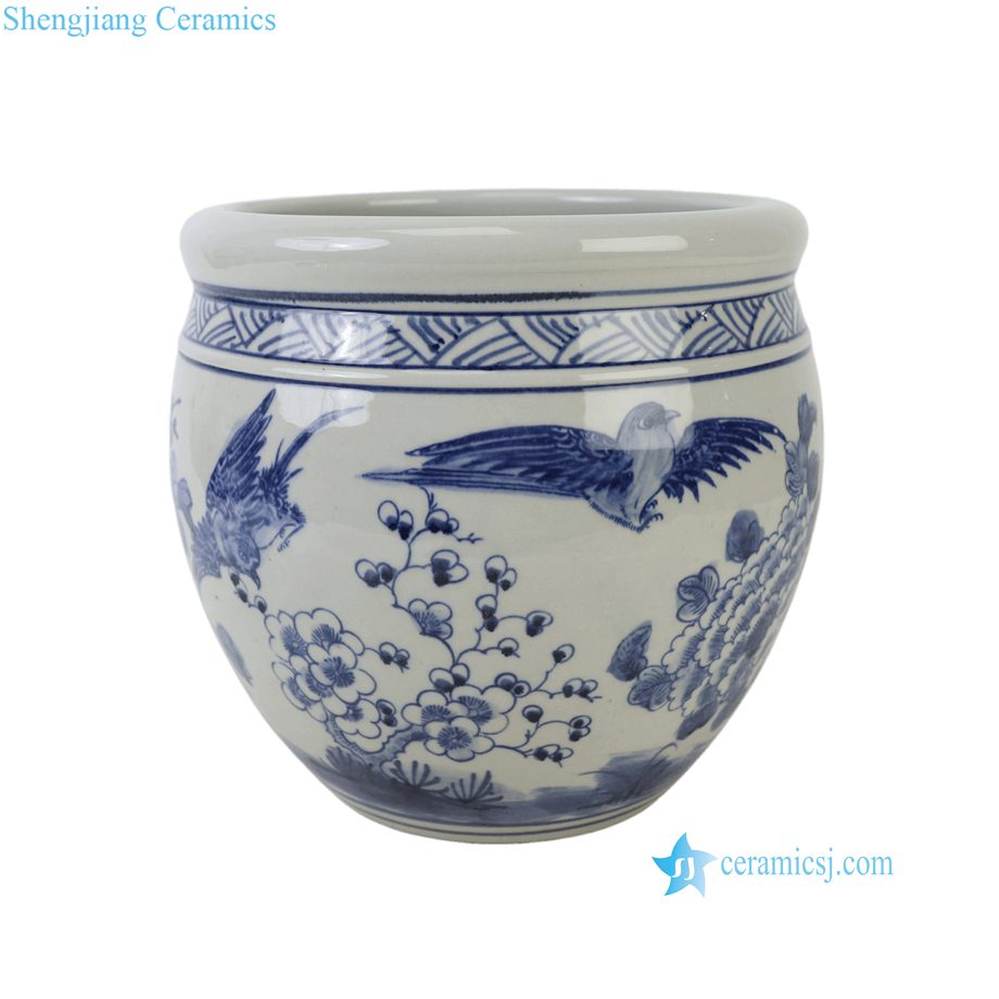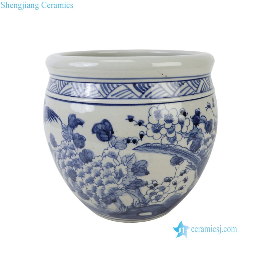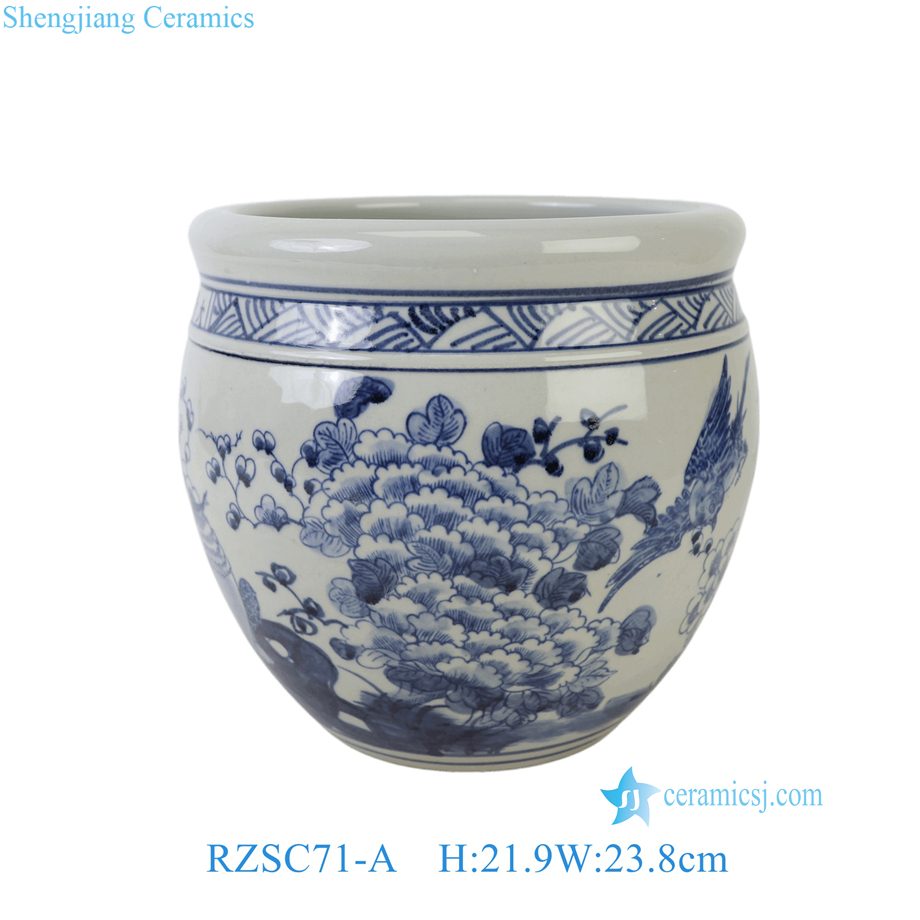 RZSC71-A Antique Style Blue and White Porcelain Fish Tank Peony Pattern Garden and Home Decorative Planter