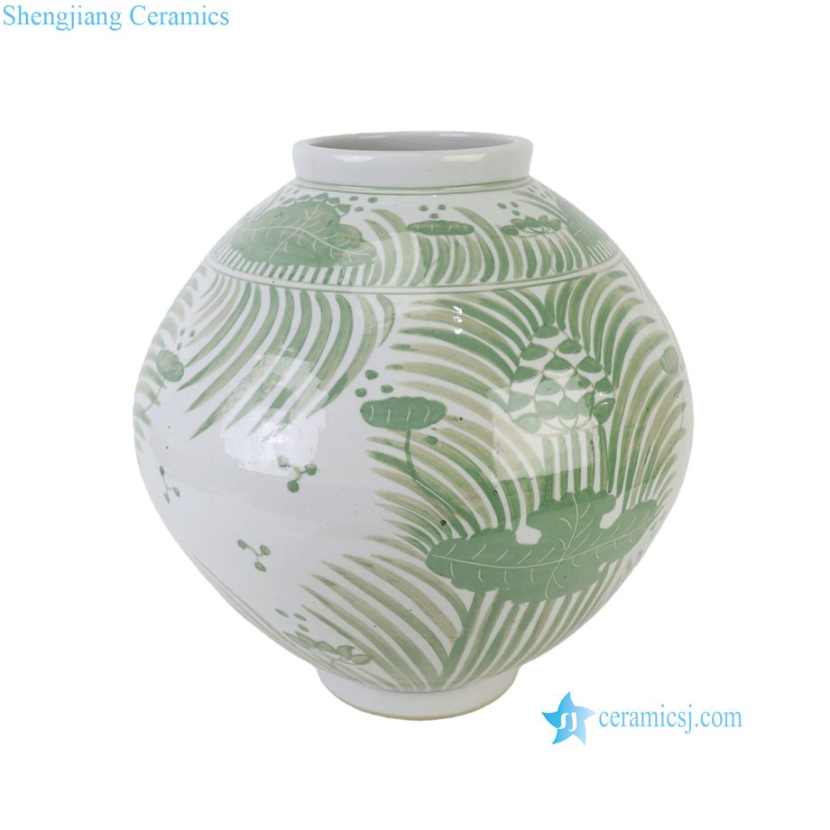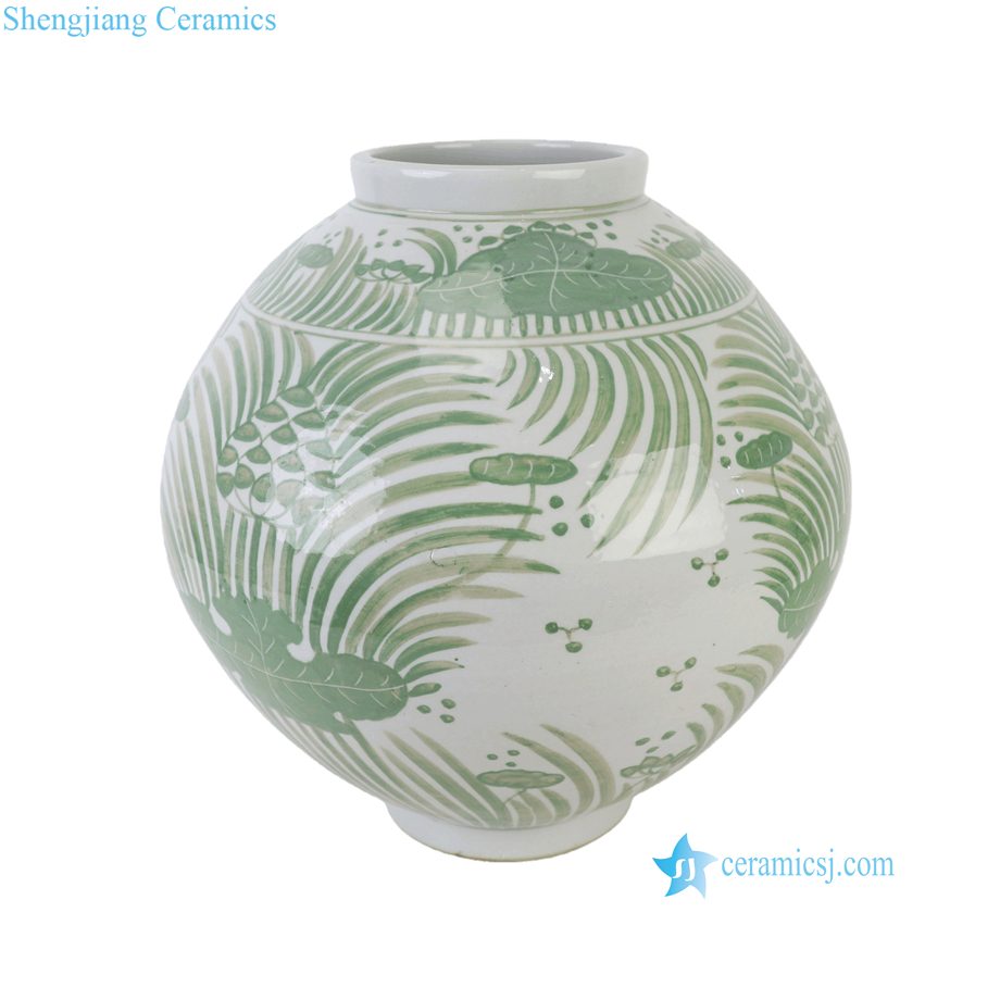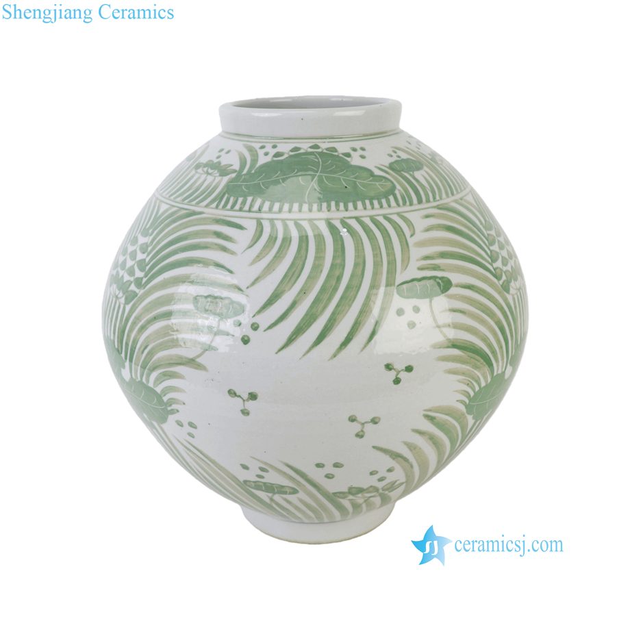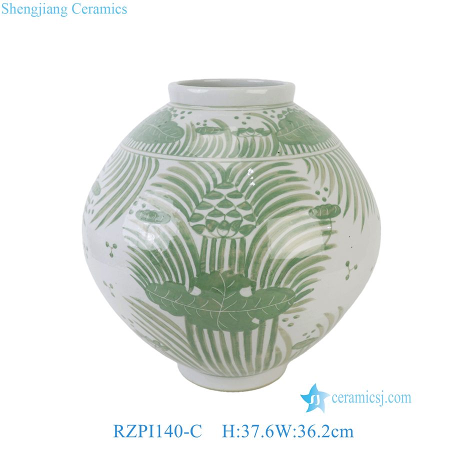 RZPI140-C Green and White Handpainted Sunflower Pattern Ceramic Vase Pot