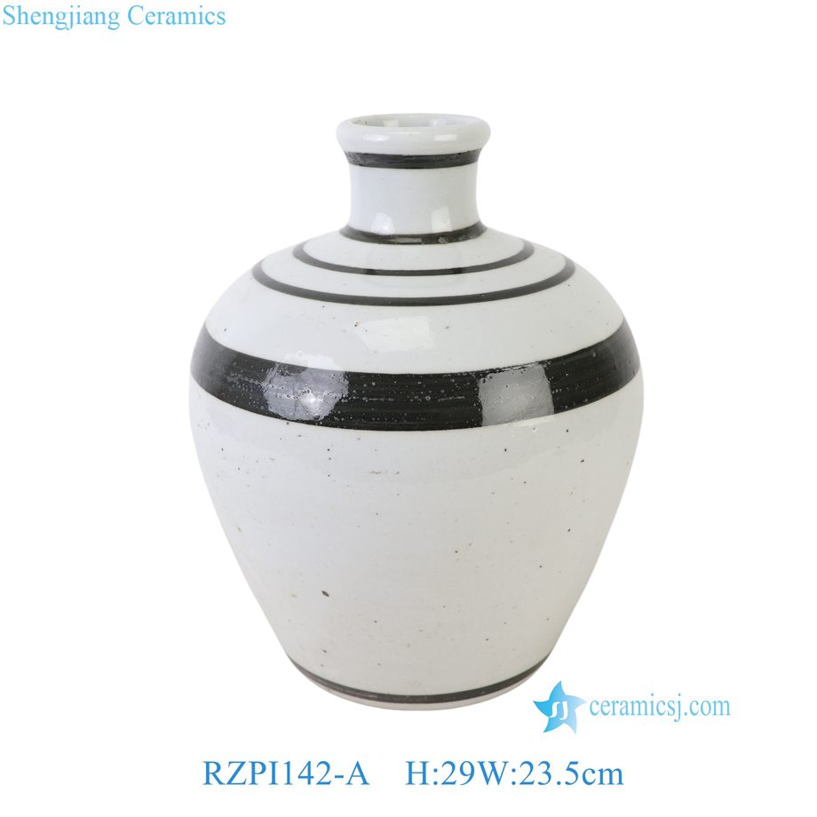 RZPI142-A 11inch White Striped Ceramic Decorative Vase Centerpiece Home Decor