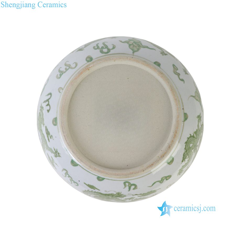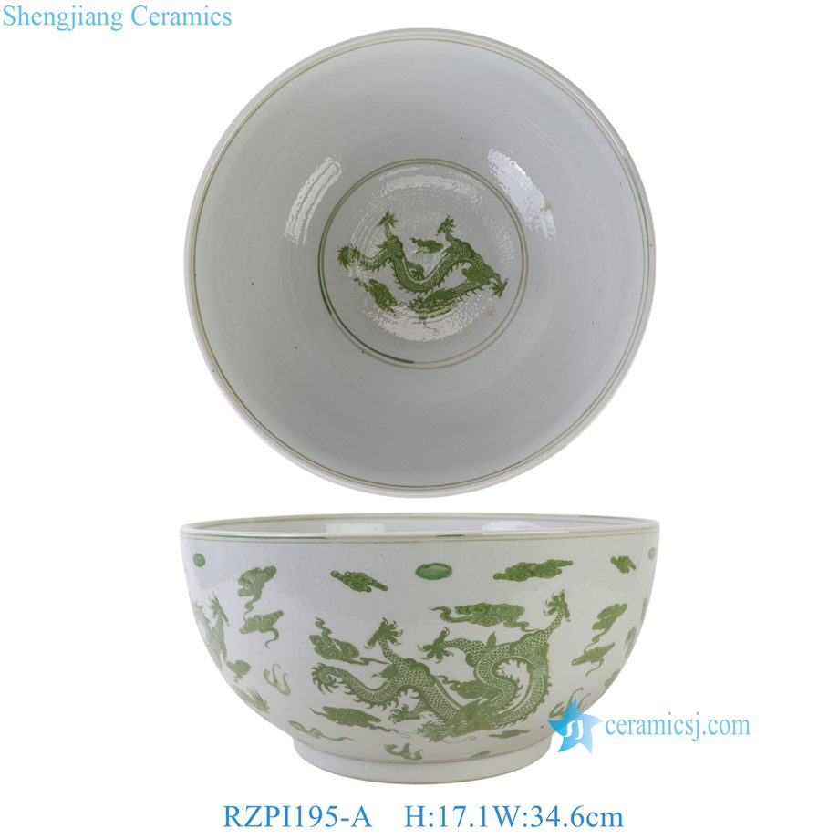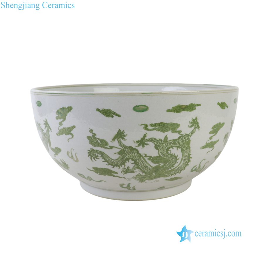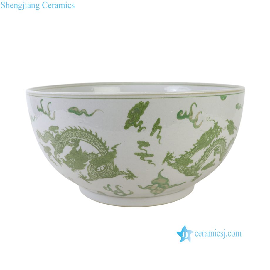 RZPI195-A Asian dragon bowl Green and White Handpainted Ceramic Big Bowl