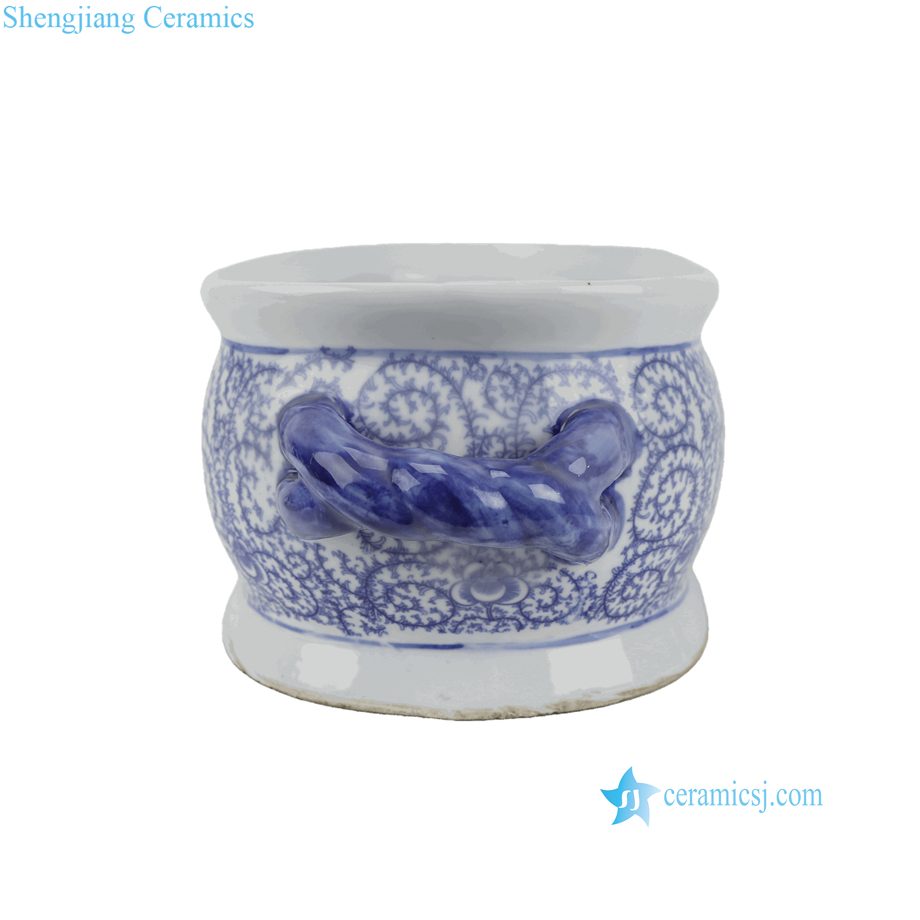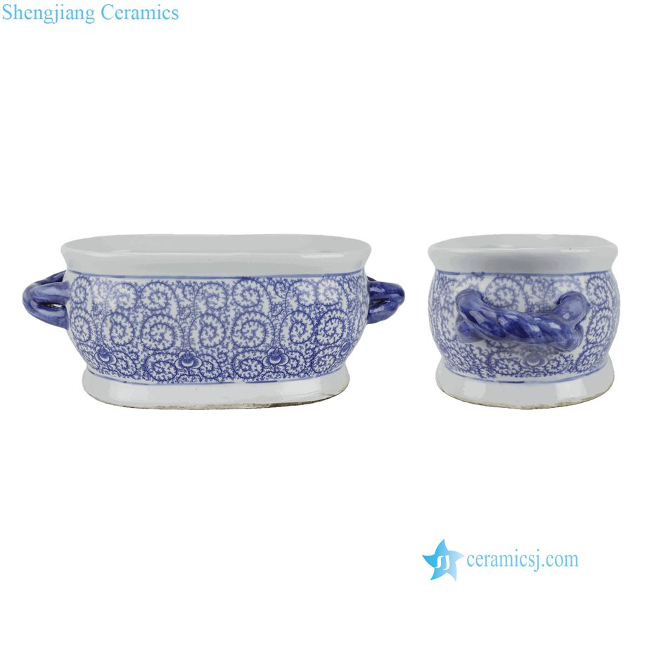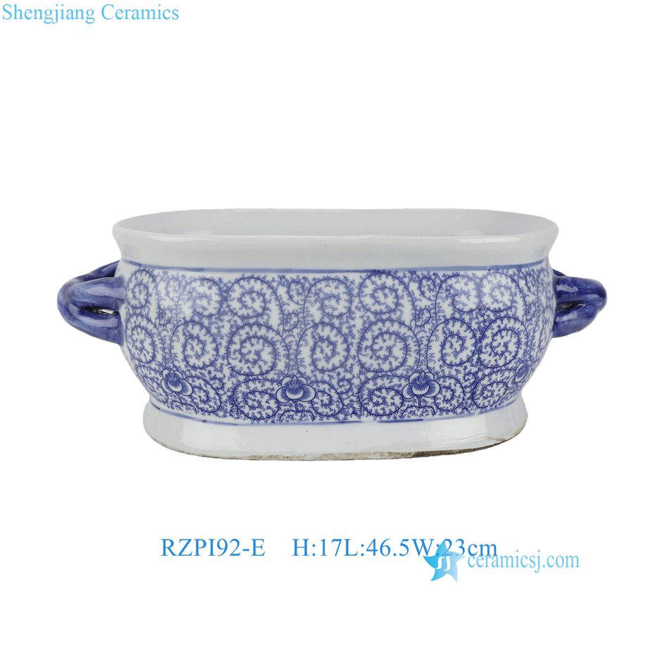 RZPI92-E Blue and White Scroll Leaf Pattern Porcelain Phoenix Motif Foot Bath Ceramic Flower Planter 18″