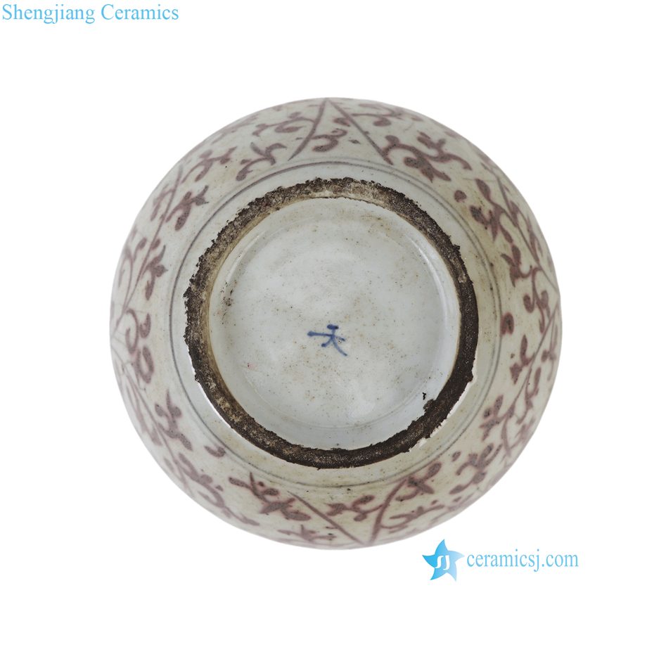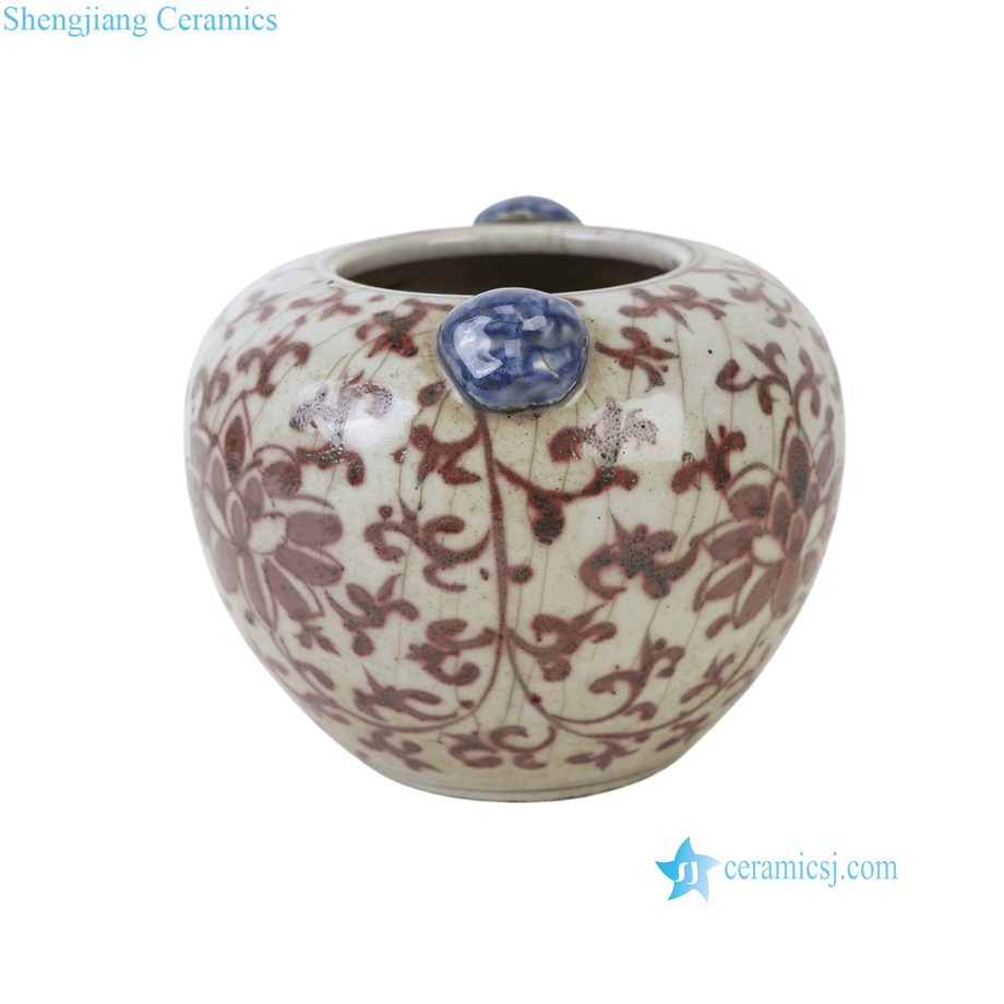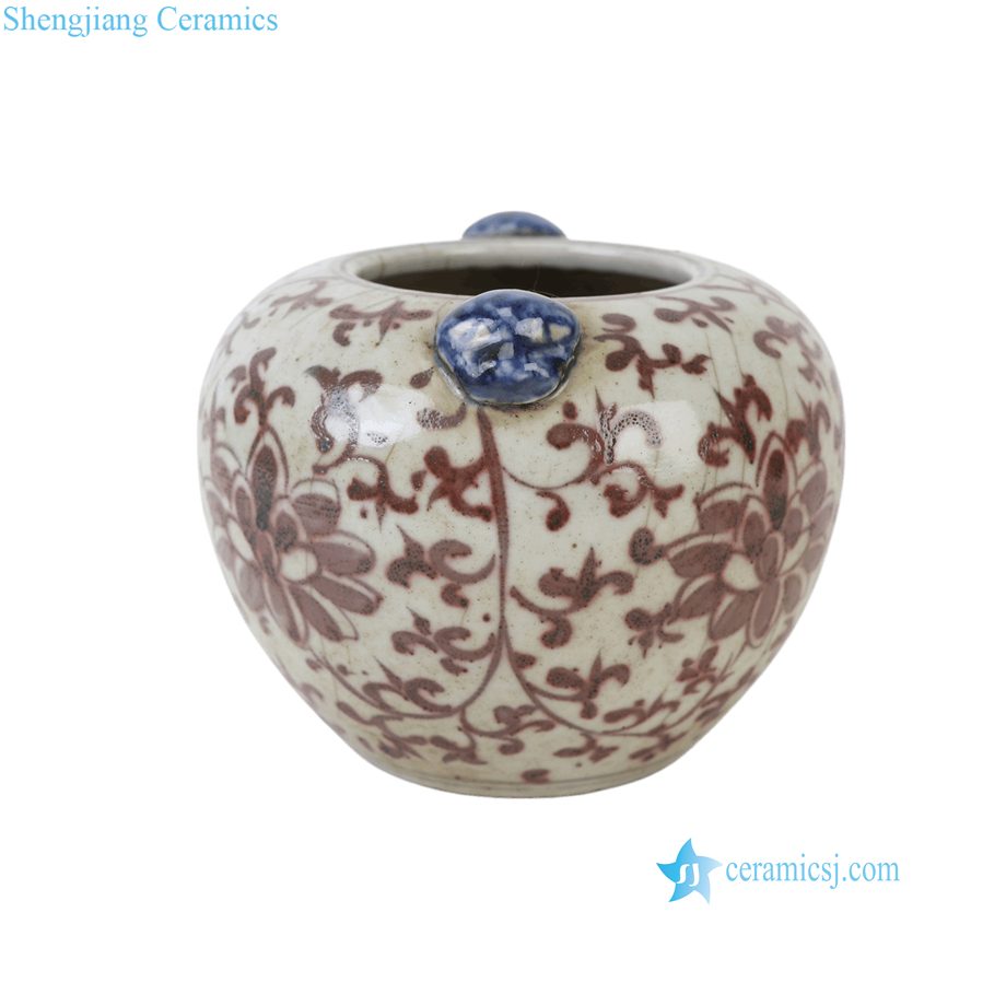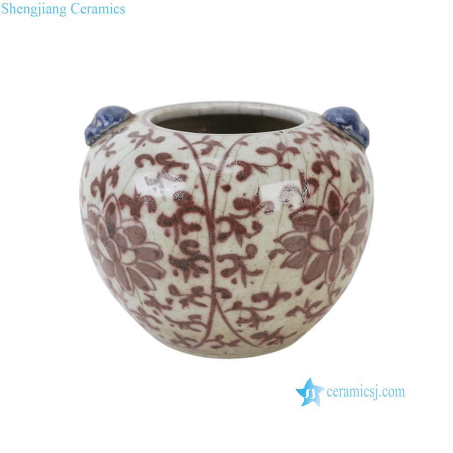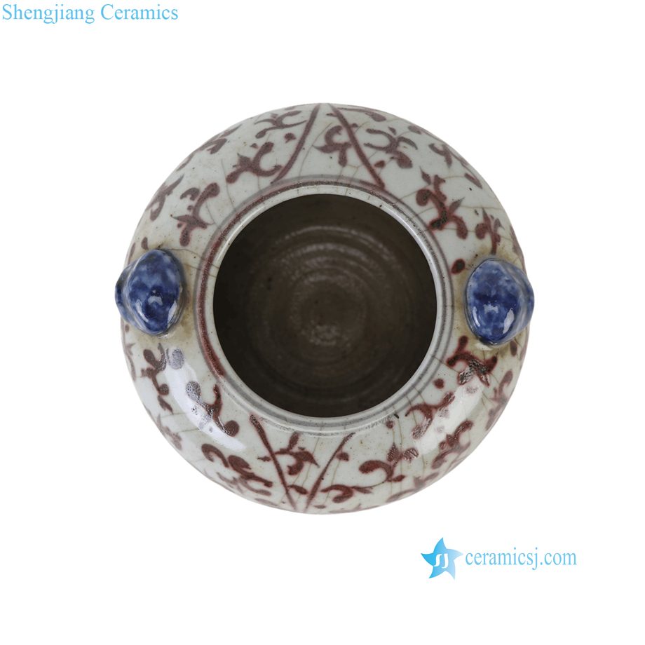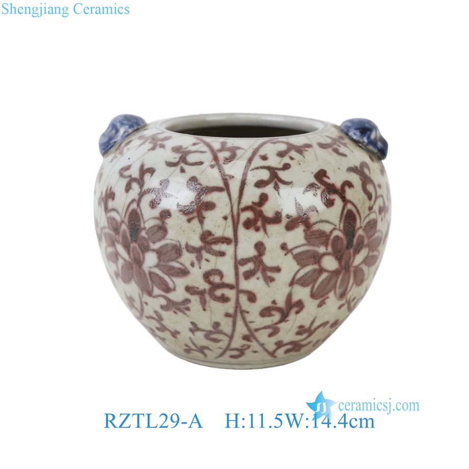RZTL29-A Antique Style Crackle Glaze Mini Jar with Animal Head Handles Brown Floral Ceramic Jar