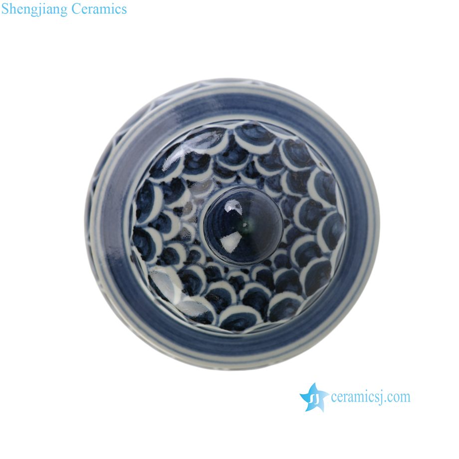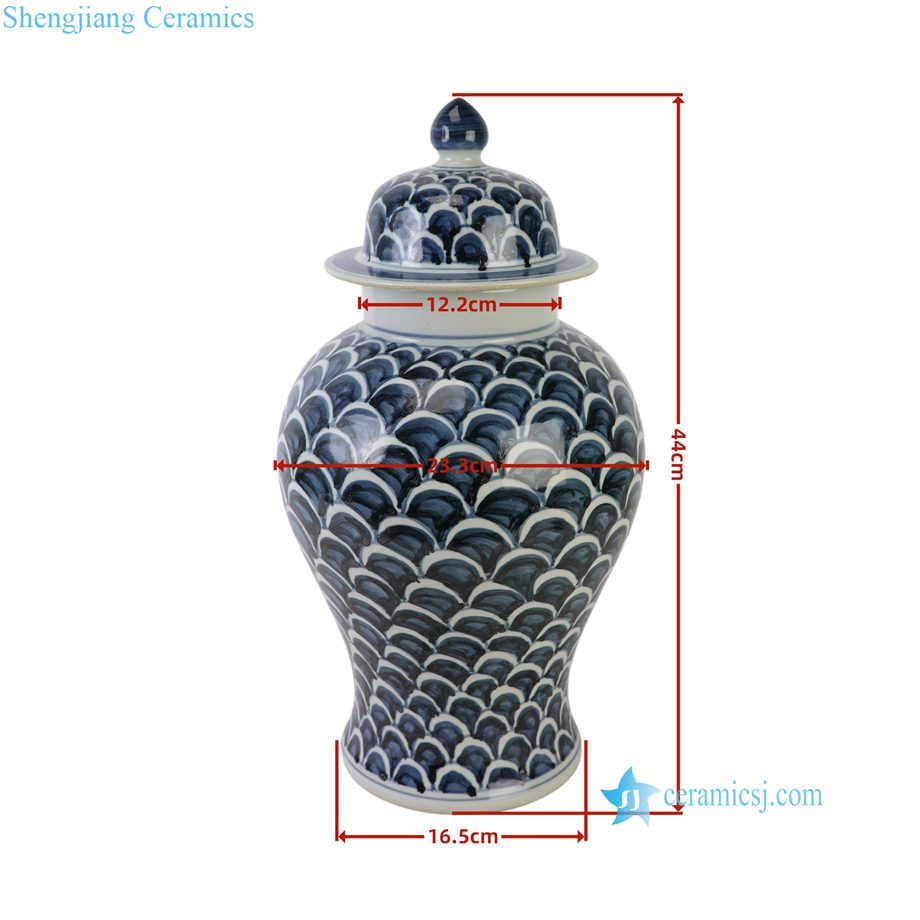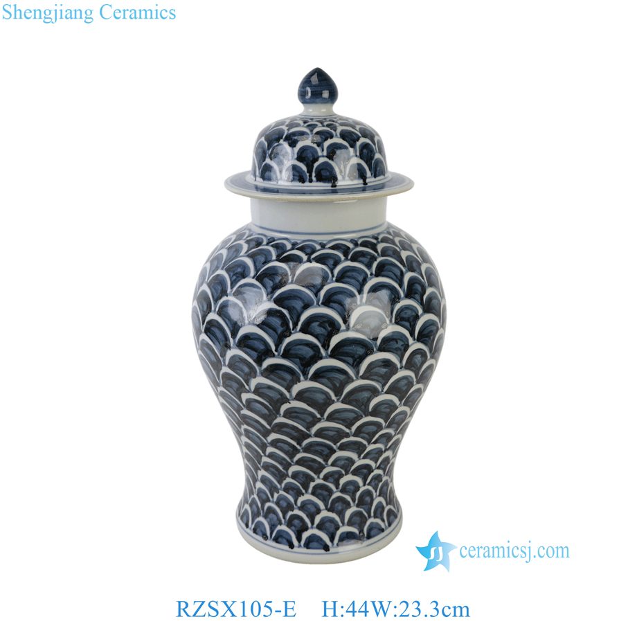 RZSX105-E Blue and White Jingdezhen Porcelain Hand painted Fish Scale Ceramic Temple Jar
