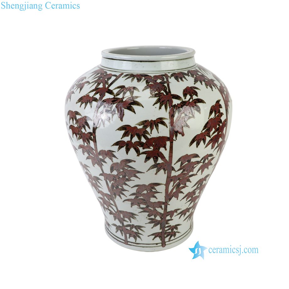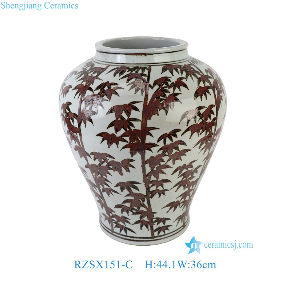 RZSX151-C Iron Rustic Brown Red Glazed Bamboo Pattern Ceramic Vase