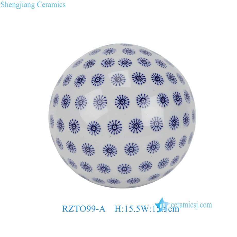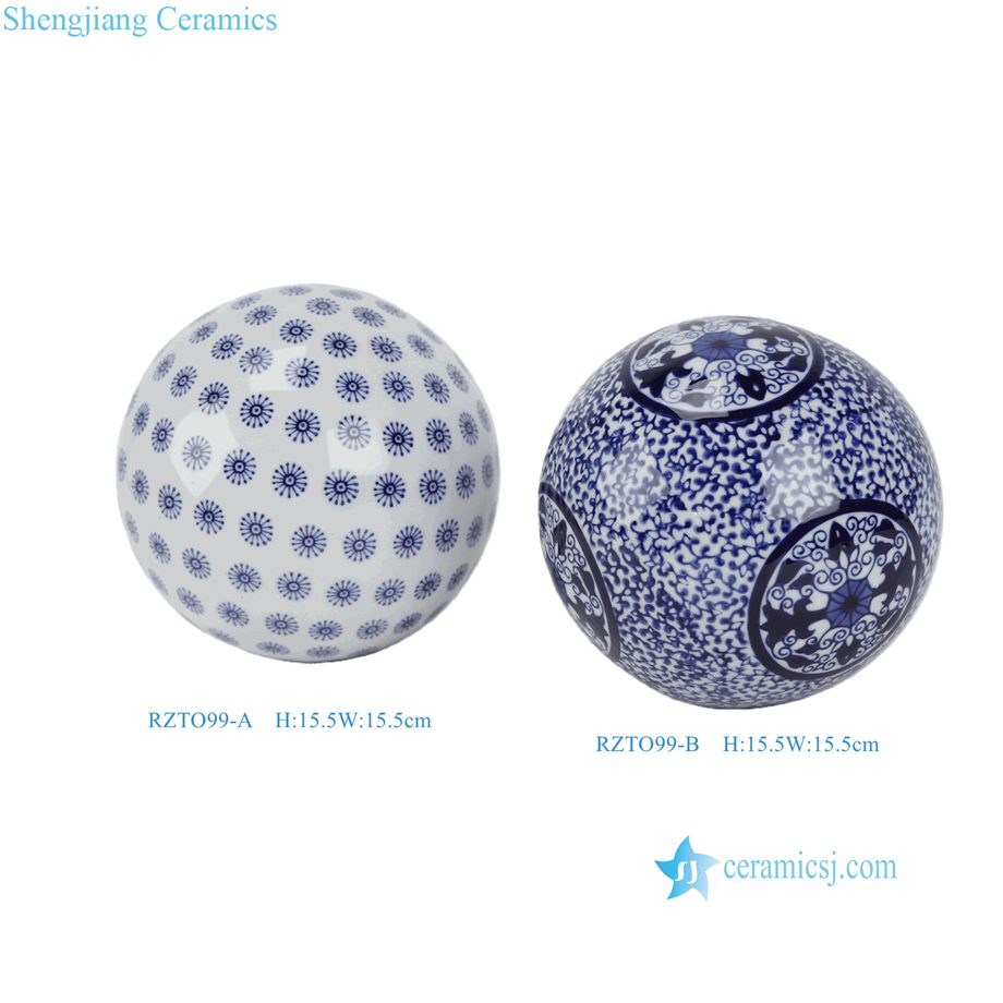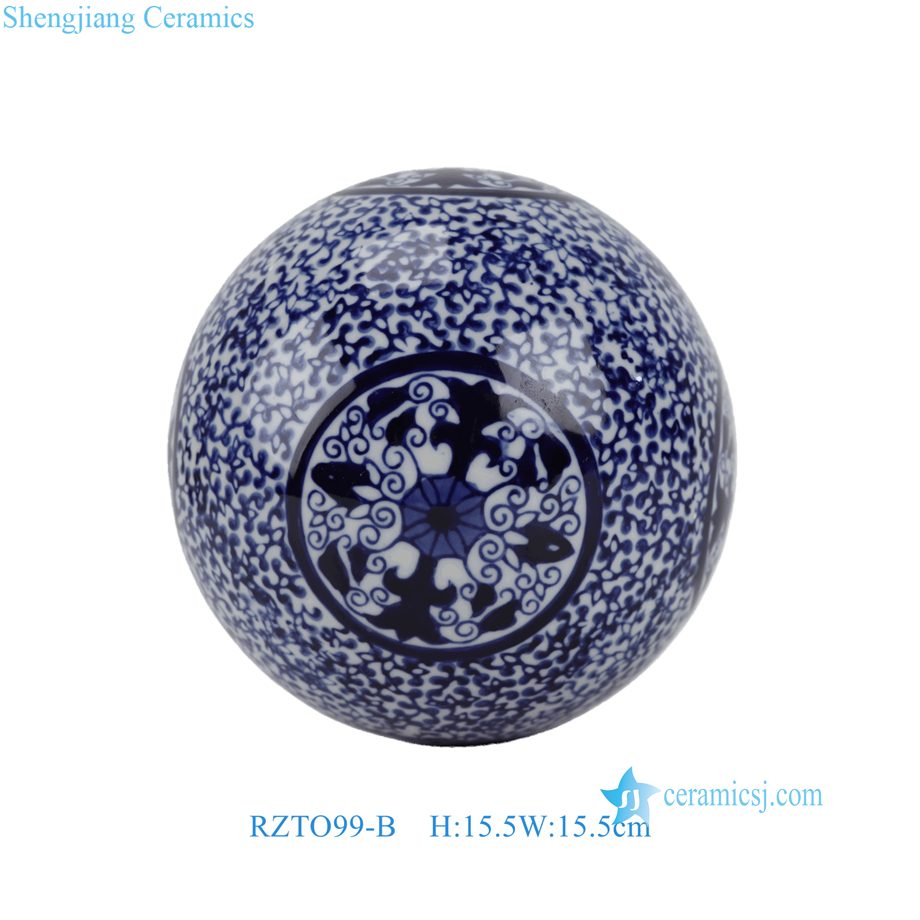 RZTO99-A-B 15cm Blue and White Ceramic Ball Floral Pattern