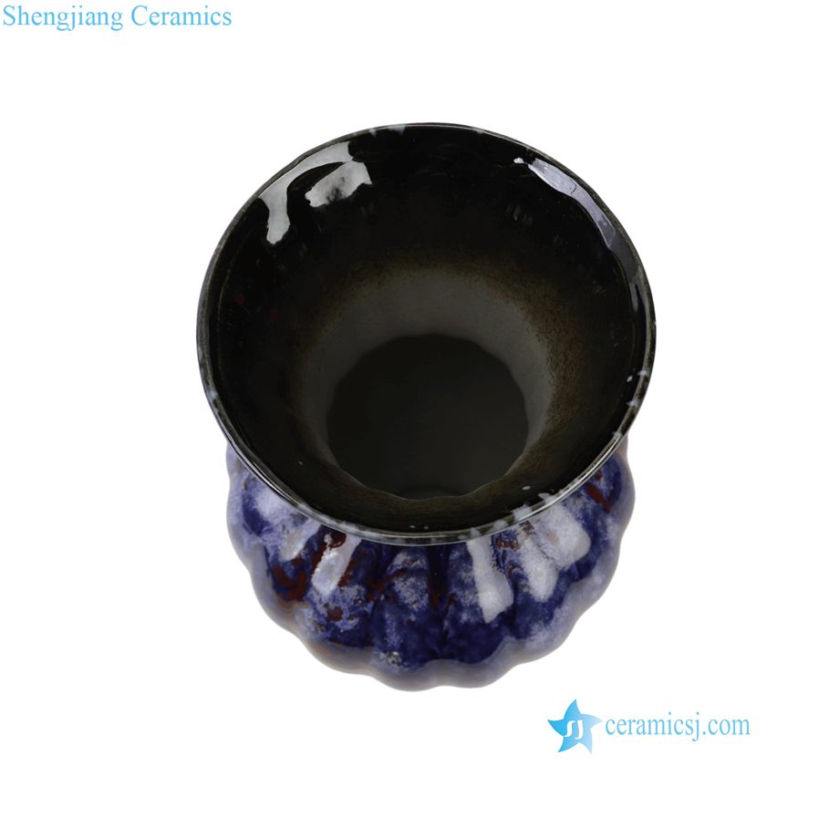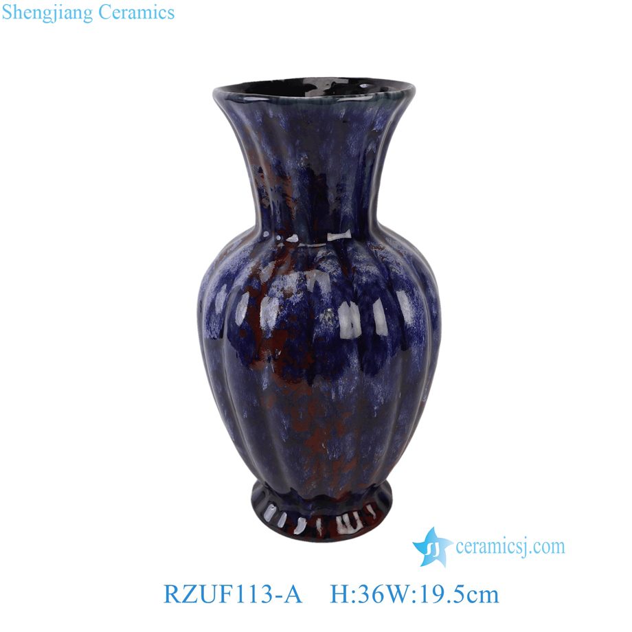 RZUF113-A Vintage Reactive Cobalt Blue Red Art Pottery Ceramic Table Vase